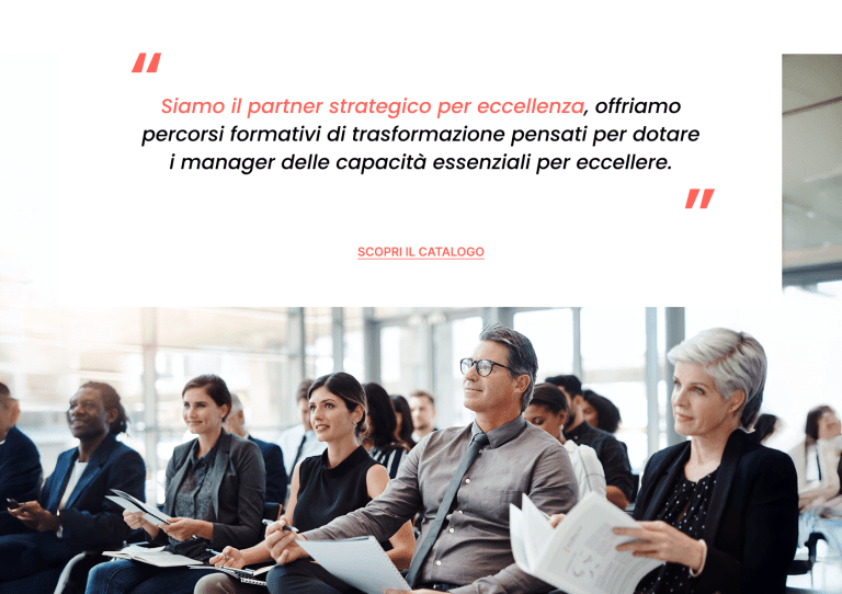 Le aziende che crescono sono quelle che sanno trasformare il cambiamento in opportunità, la conoscenza in decisione e l’innovazione in vantaggio competitivo. Per questo la nostra proposta formativa nasce per accompagnare le imprese in questo percorso, mettendo al centro visione del futuro, autorevolezza dei contenuti e competenze di alto profilo.